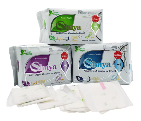 SHUYA (Serviettes & Protèges slip) sont équipés de la bande d'Anion. Ils préviennent les infections intimes et traitent les infections existantes.